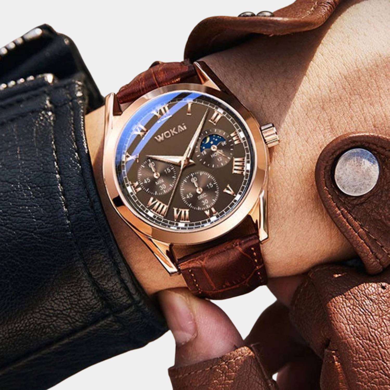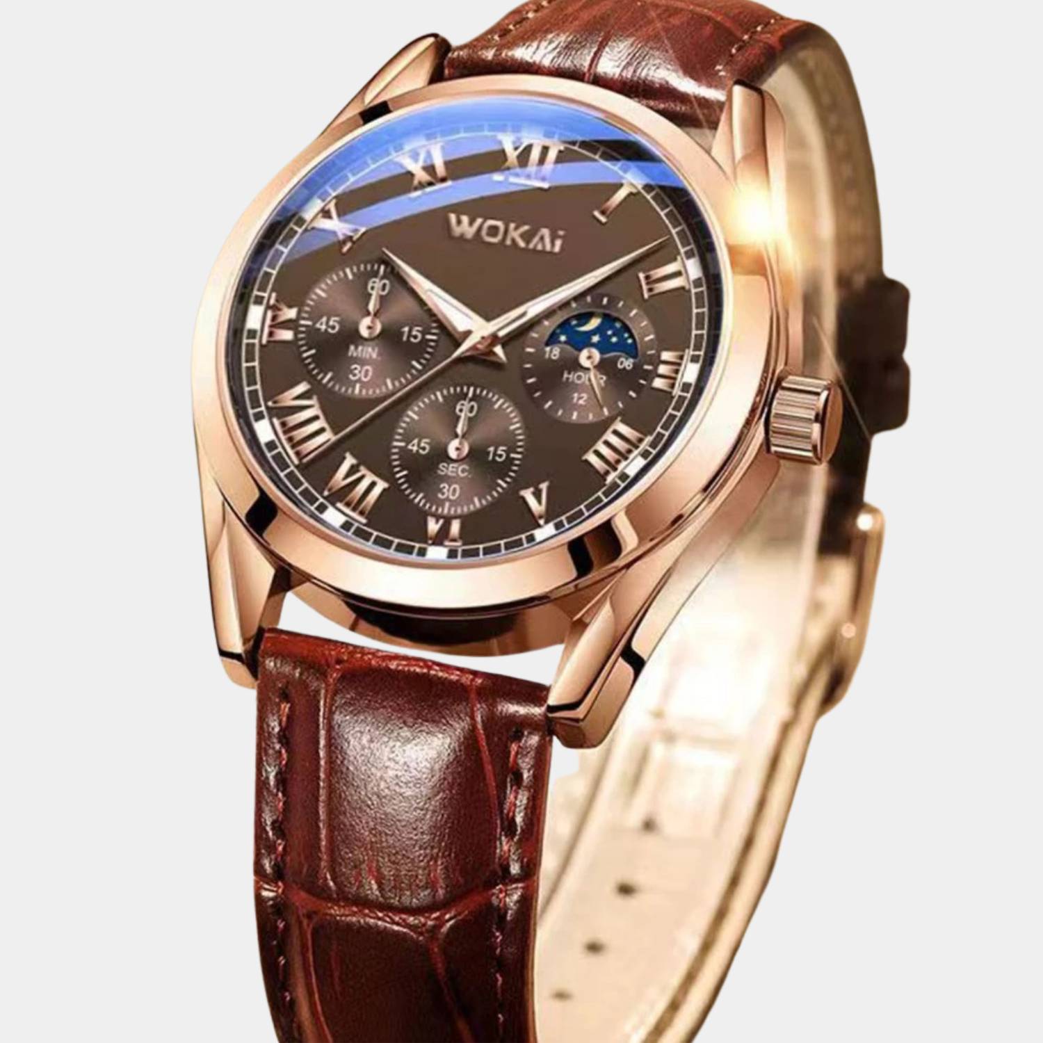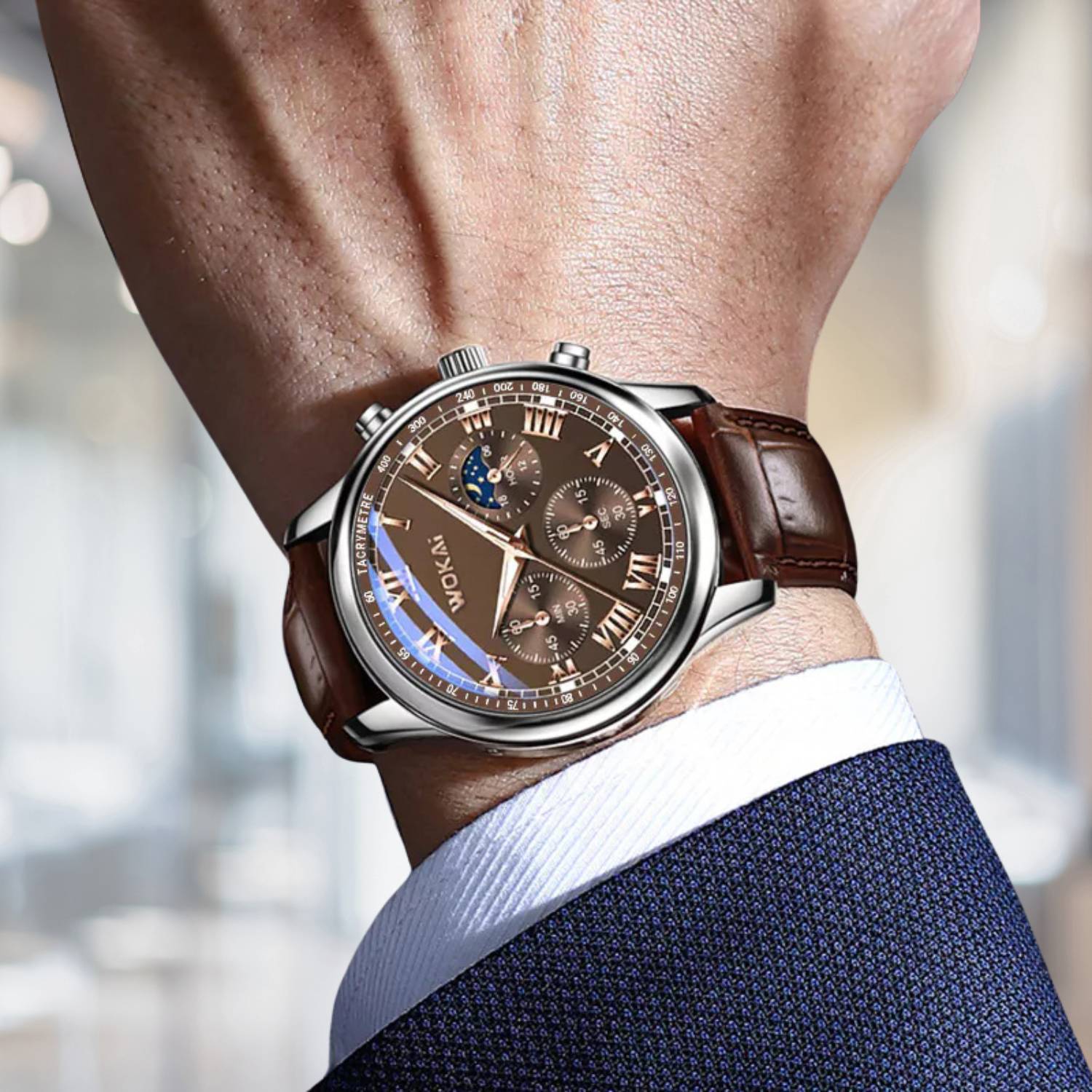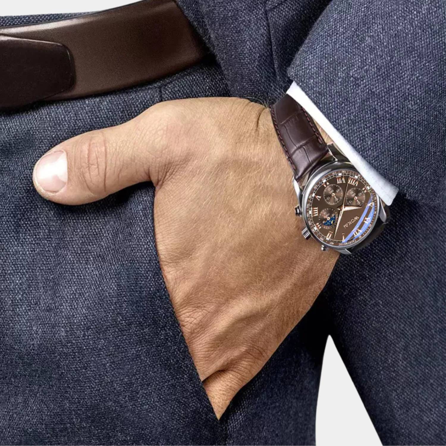 Verhoog je stijl met het luxe Quartz polshorloge voor heren!Met een elegante leren band en gedetailleerde wijzerplaat straalt dit horloge tijdloze klasse uit. Het nauwkeurige quartz uurwerk en de multifunctionele subdials bieden zowel functionaliteit als stijl. Perfect voor elke gelegenheid, van formeel tot dagelijks gebruik.